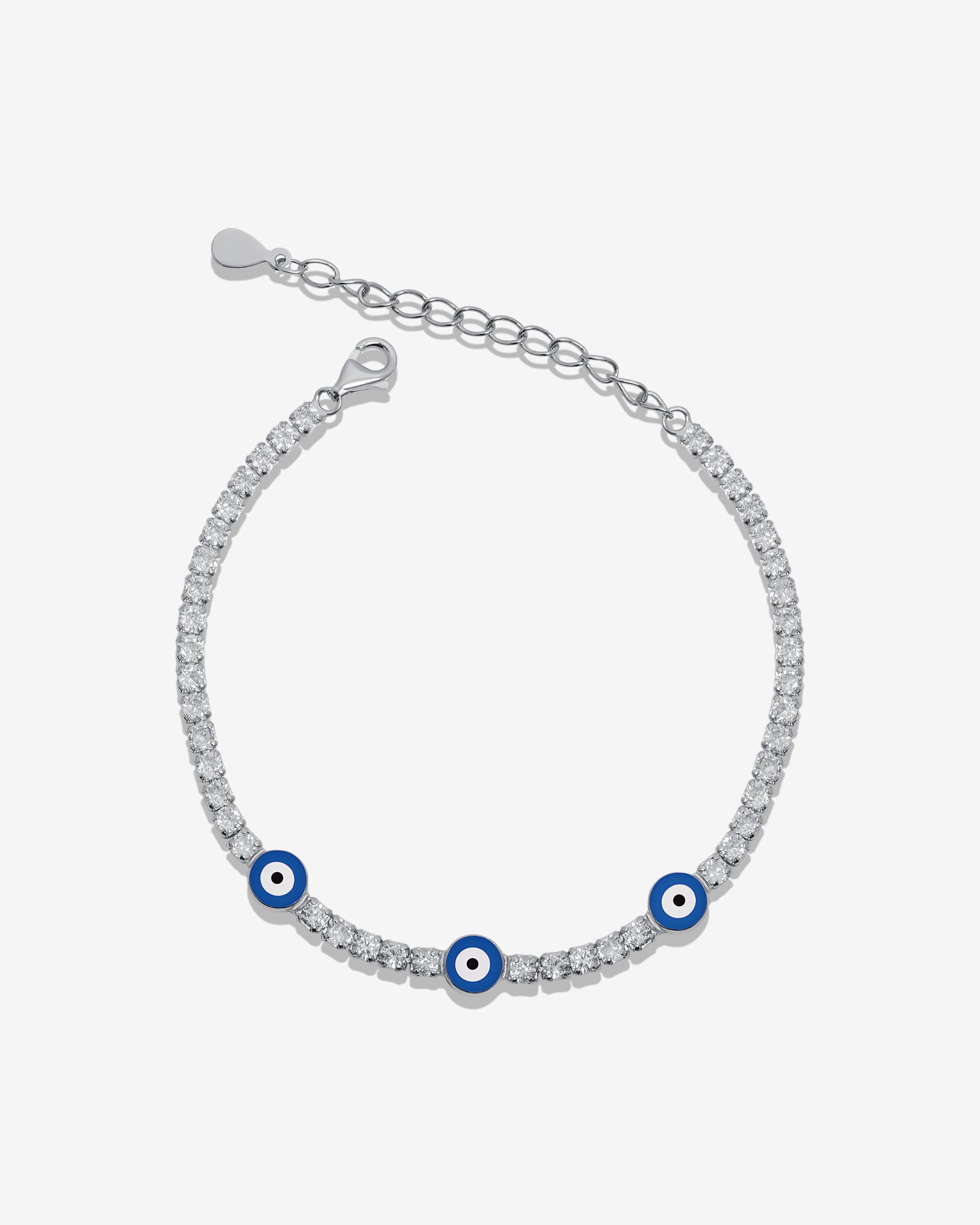 Made from beautiful white Zirconia gems to give off that beautiful shine effect we all crave for and featuring 3 beautiful evil eye charms.