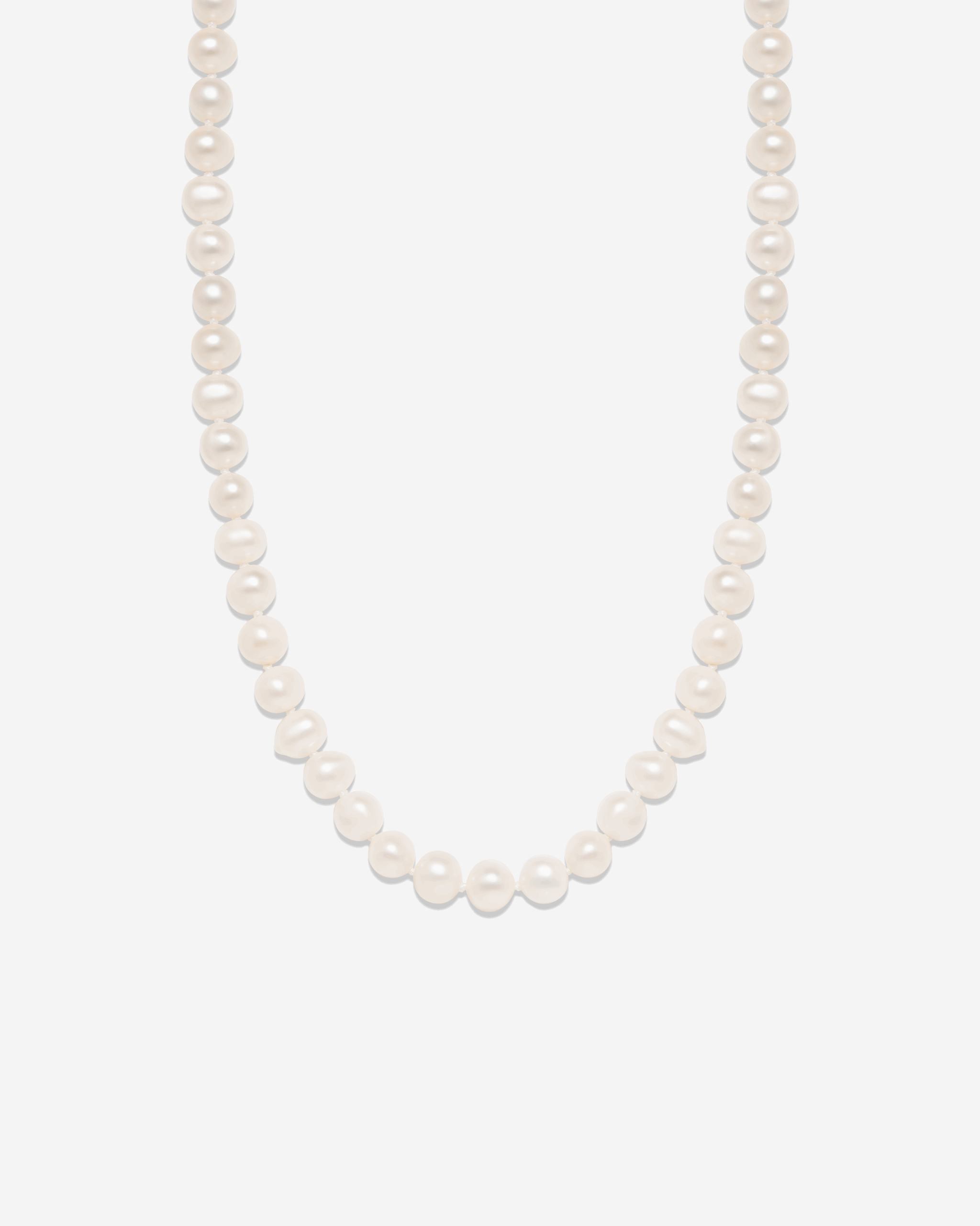 This beautiful classic pearl necklace is a must-have for your jewelry collection. Natural white lake pearls perfectly pierced into the most classic pearl necklace you could have. The perfect pearls for your jewelry collection, can be worn on their own or layered with other pieces of jewelry.