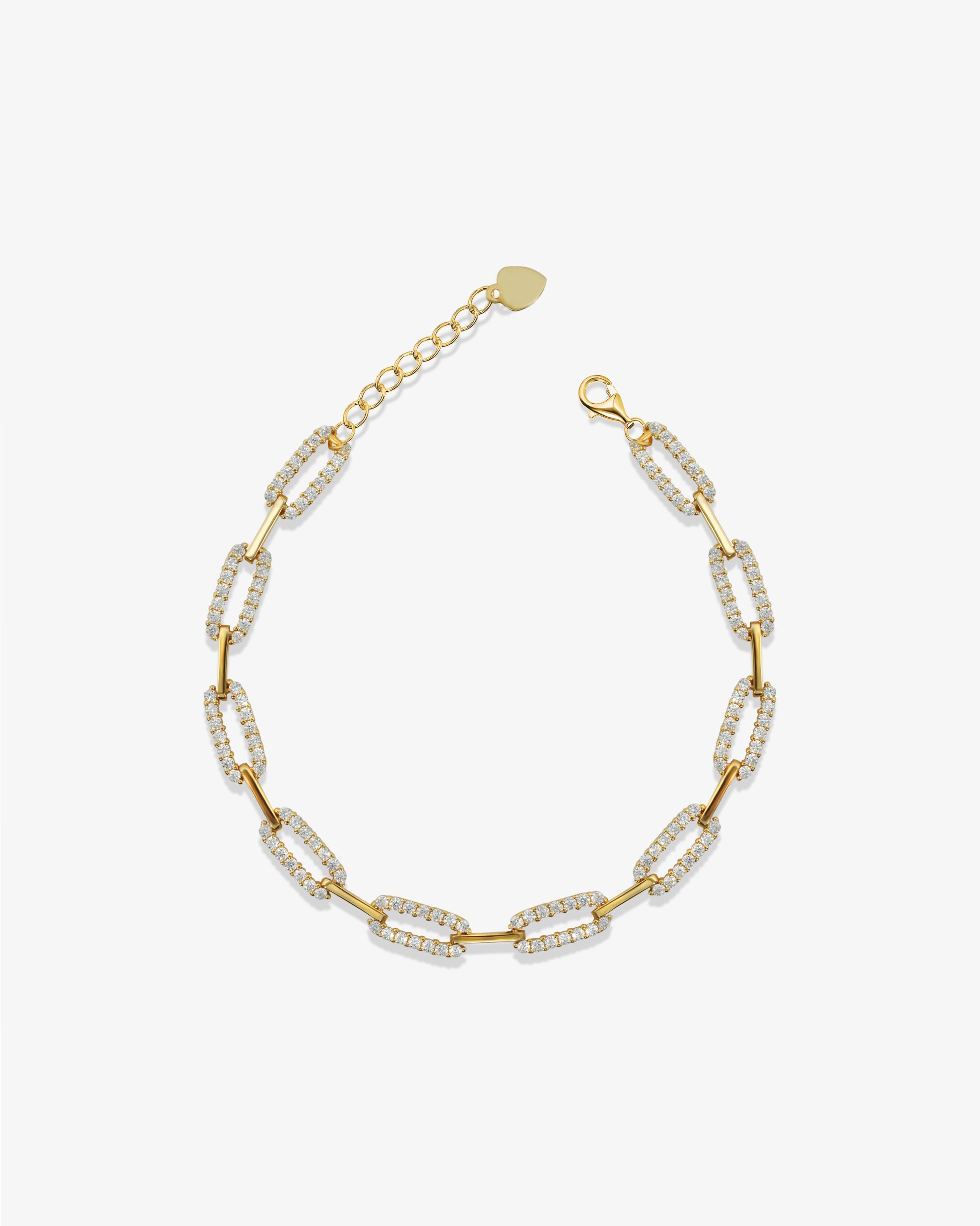 Elevate your everyday style with this stunning gold plated silver zirconia link bracelet, designed with elongated rectangular links fully lined in shimmering clear stones. Each segment catches the light beautifully, creating a luxurious sparkle with every movement.