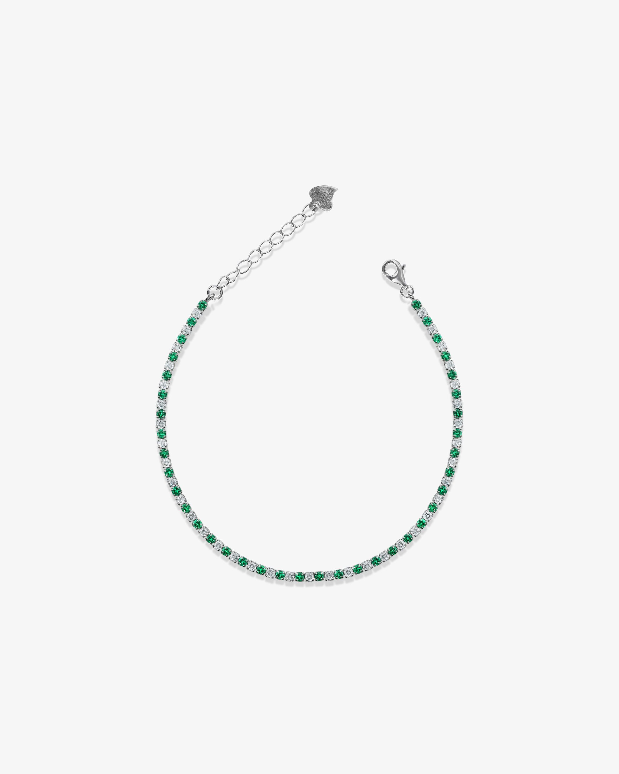 A tennis chain is your jewelry boxes must have item! this eye catching classic is made from pure 925 sterling silver and can be worn on its own or layered with other pieces of jewelry. Made from a beautiful range of white and green gems to give off that beautiful shine effect we all crave for. The beautiful colors of this bracelet are a must and very unique.