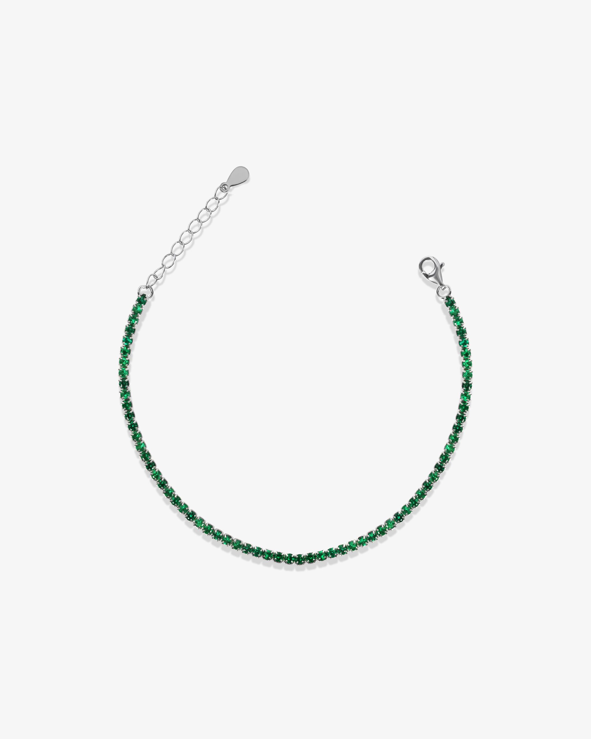 A tennis chain is your jewelry boxes must have item! this eye catching classic is made from pure 925 sterling silver and can be worn on its own or layered with other pieces of jewelry. Made from beautiful green zirconia gems to give off that beautiful shine effect we all crave for.