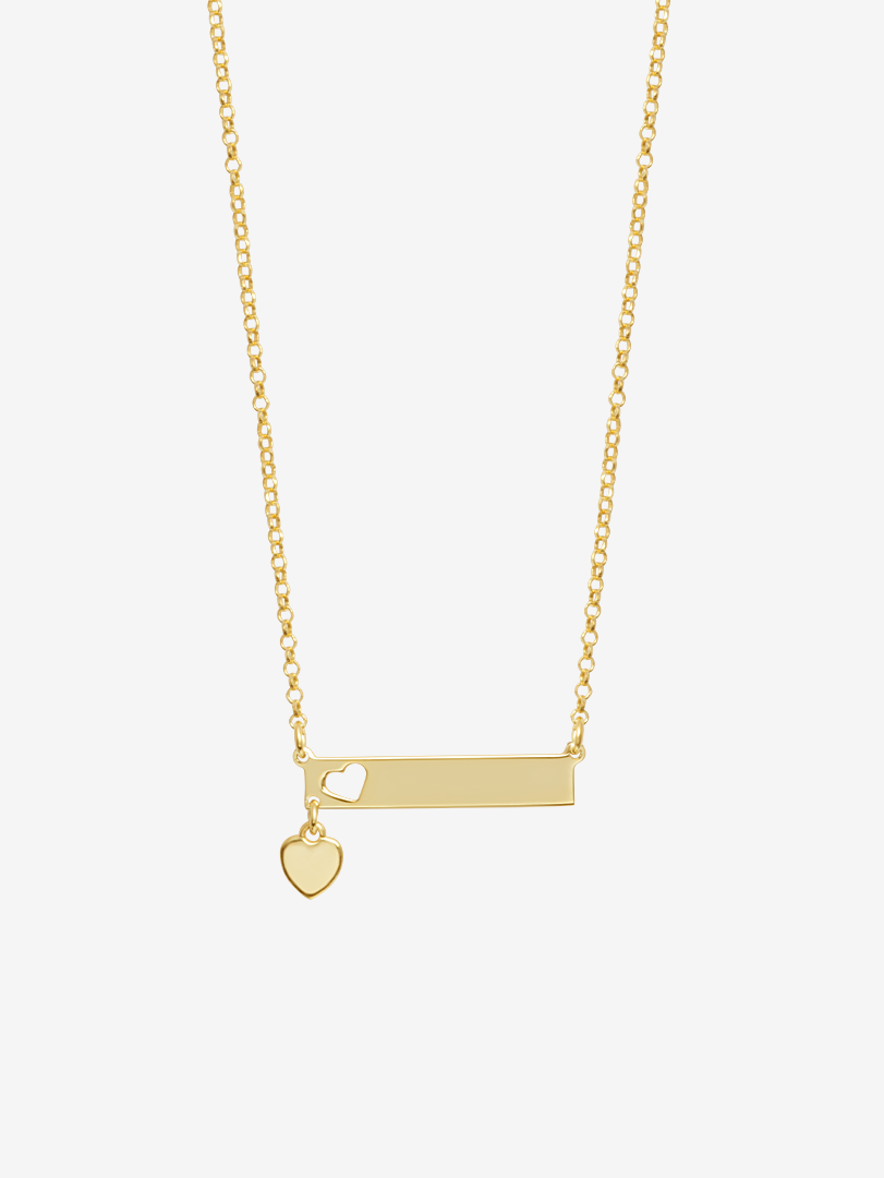 This beautiful plate design with a heart charm attached to the bottom featuring a heart engraving on the side of the necklace is perfect for engraving something special or to be left empty on its own. Personalized necklaces are special and a must have for all jewelry collections.