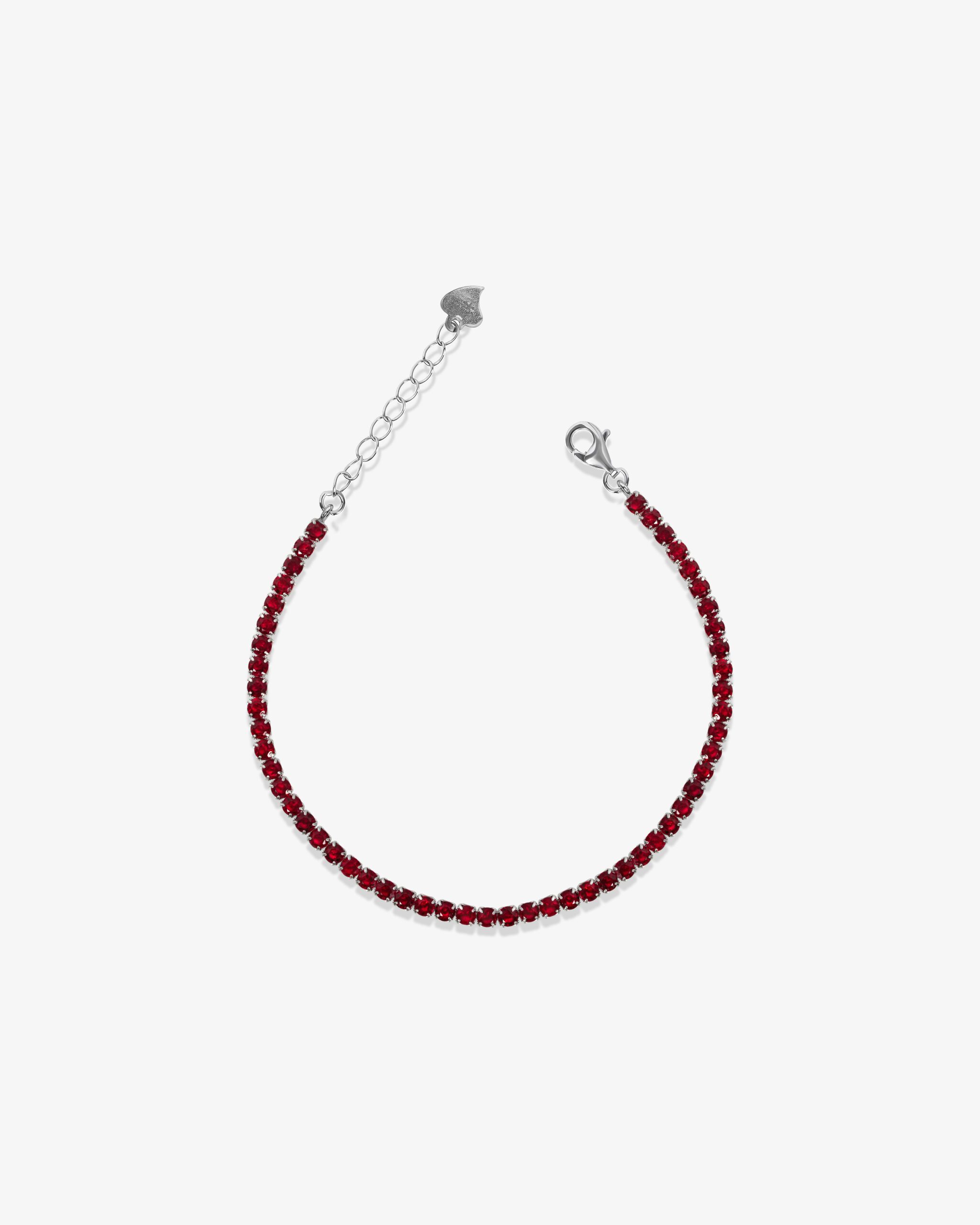 A tennis chain is your jewelry boxes must have item! this eye catching classic is made from pure 925 sterling silver and can be worn on its own or layered with other pieces of jewelry. Made from beautiful red zirconia gems to give off that beautiful shine effect we all crave for.