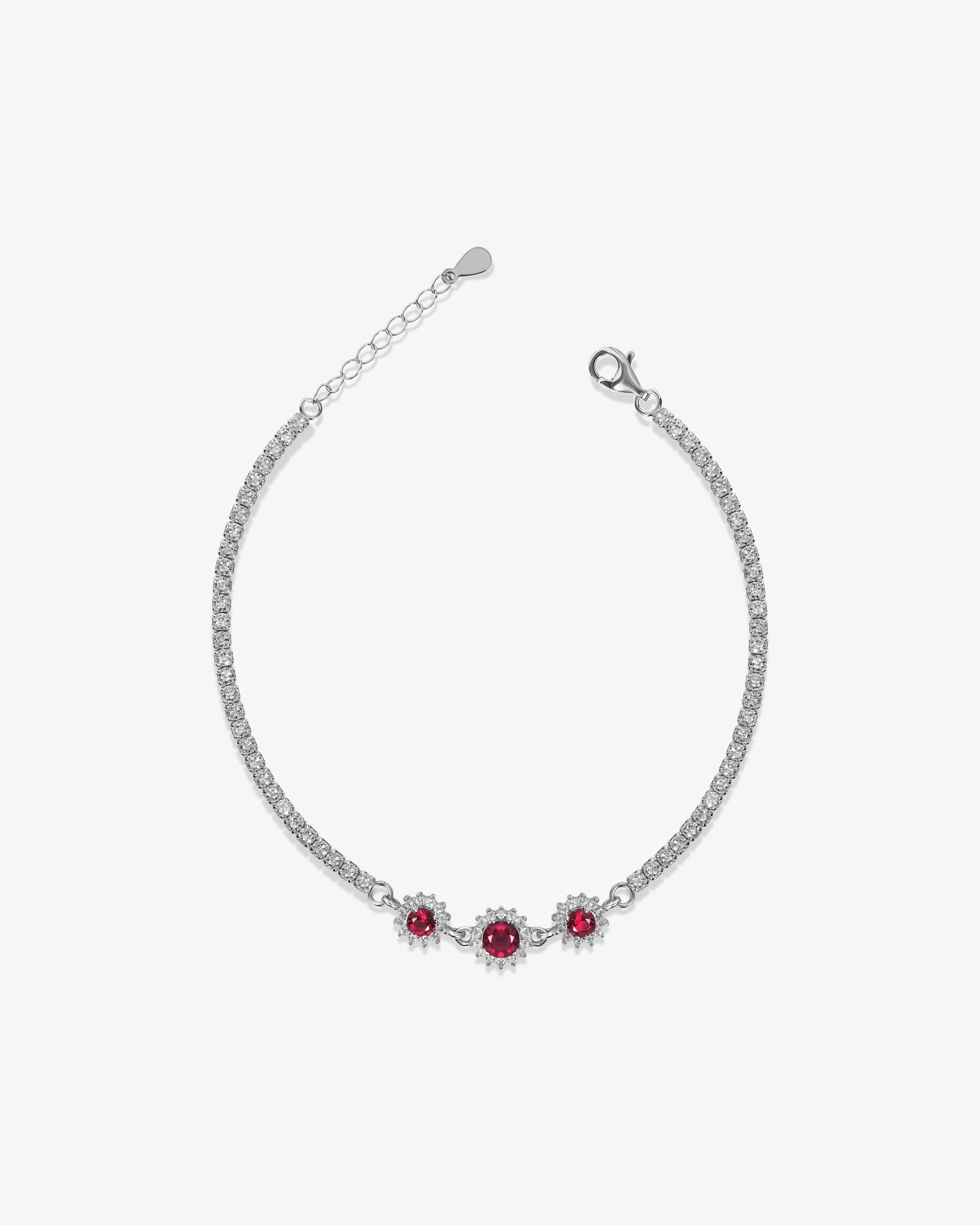 A tennis chain is your jewelry boxes must have item! this eye catching classic is made from pure 925 sterling silver and can be worn on its own or layered with other pieces of jewelry. Made from beautiful white zirconia and ruby gems to give off that beautiful shine effect we all crave for.