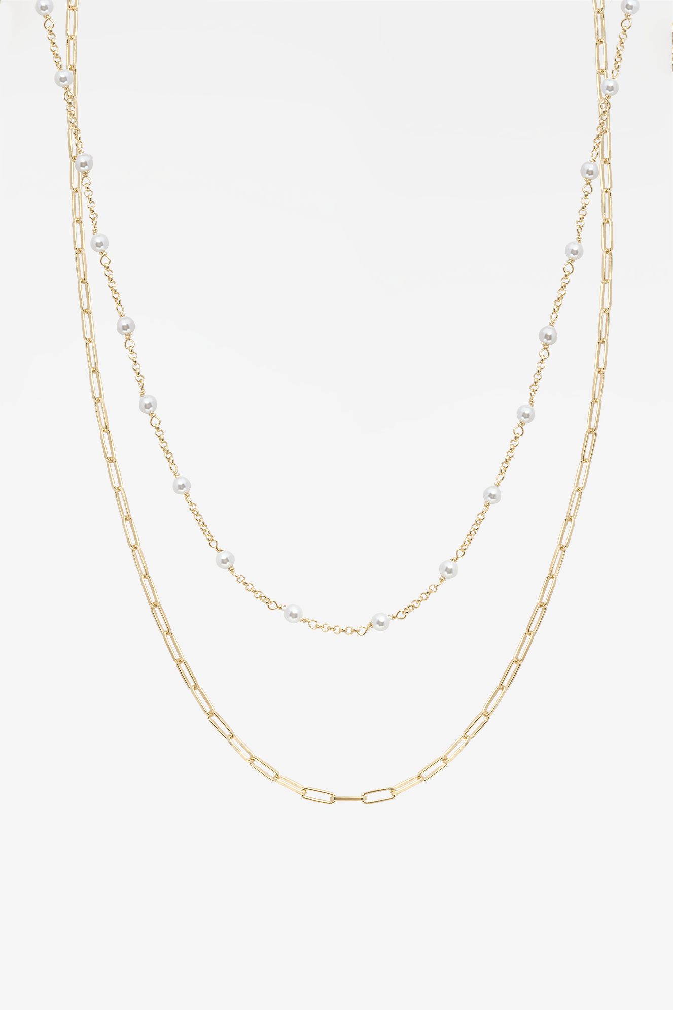 Shackles & Baby Pearls Twin 18k Gold Plated Necklace